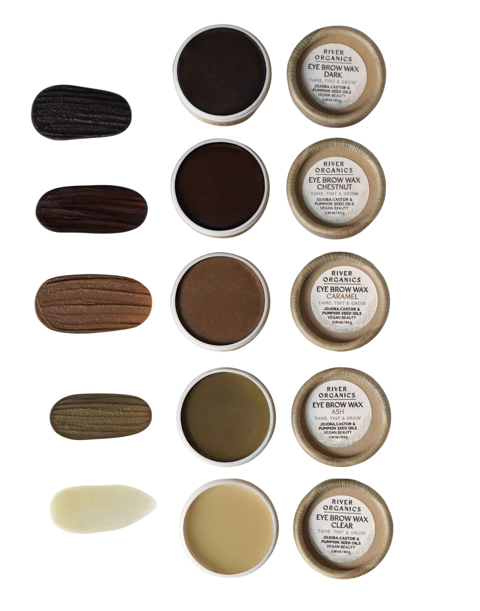 Achieve naturally defined, long-lasting brows with River Organics Brow Wax. This vegan, cruelty-free brow wax is made with nourishing plant-based ingredients like organic castor oil and candelilla wax to condition brows while providing all-day hold. The smooth, buildable formula shapes and defines brows without stiffness, leaving a soft, natural finish. Housed in plastic-free, zero-waste packaging, this brow wax is perfect for those seeking sustainable beauty solutions. We’ve reformulated to now include pumpkin seed oil, a natural source of zinc and fatty acids known -