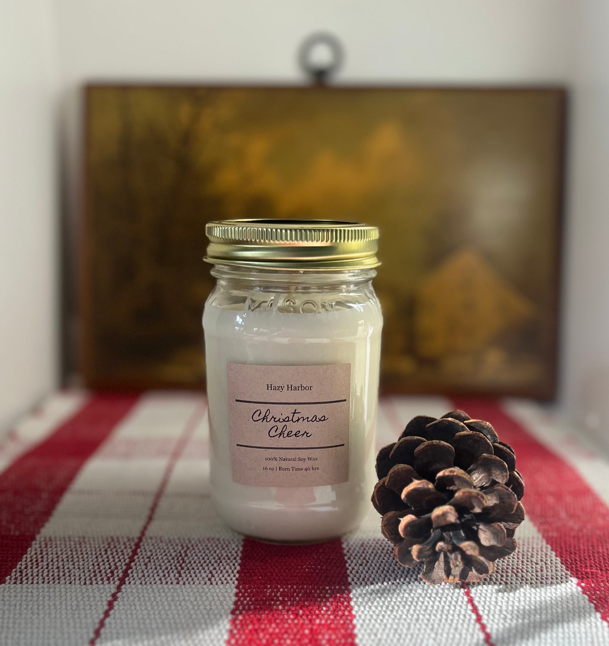 Christmas Cheer is a classic holiday scent that tells the story of a cozy holiday night spent sipping cocoa in front of the fireplace. This scent combines cinnamon and spice notes with notes of fir and pine from the Christmas tree. It's Christmas wrapped up in a 8 oz tin and it's wonderful!