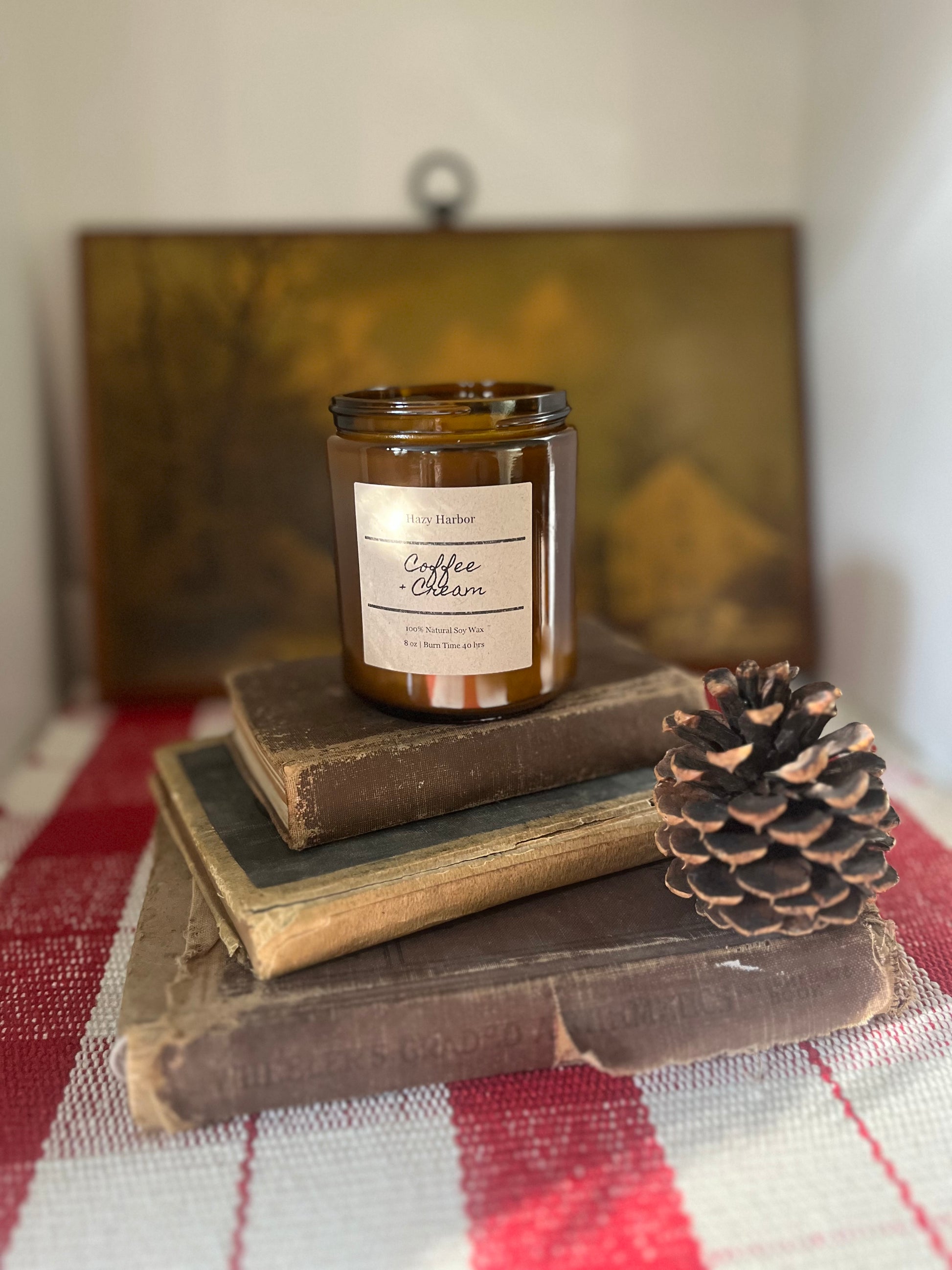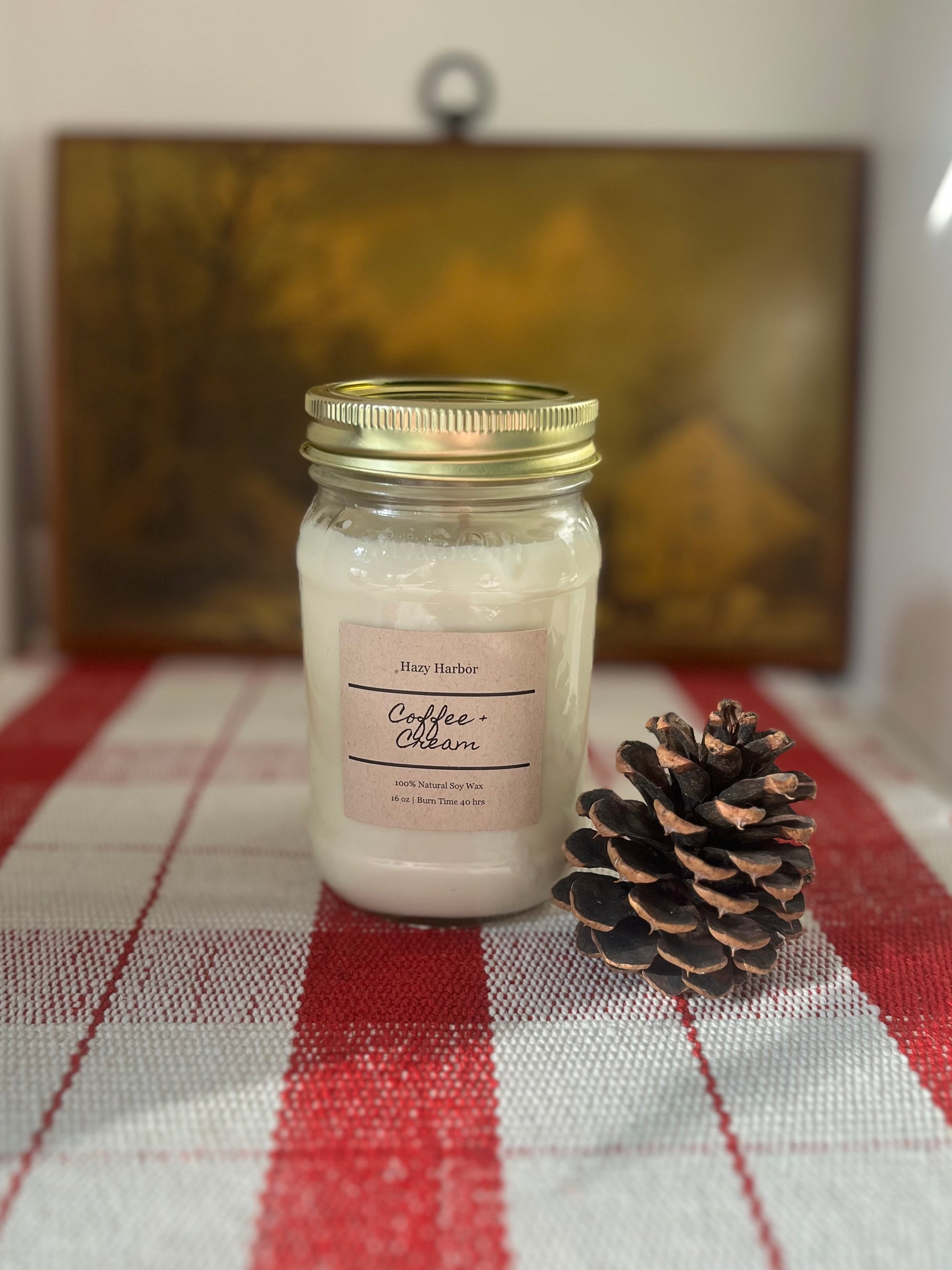 Our Coffee + Cream soy candle has strong coffee notes with undernotes of cinnamon, vanilla, and a sweet touch of cream.