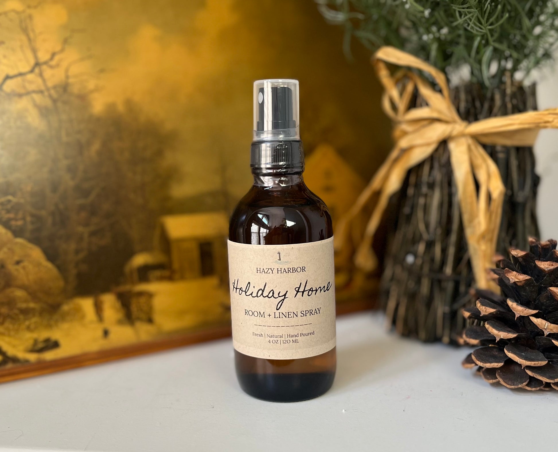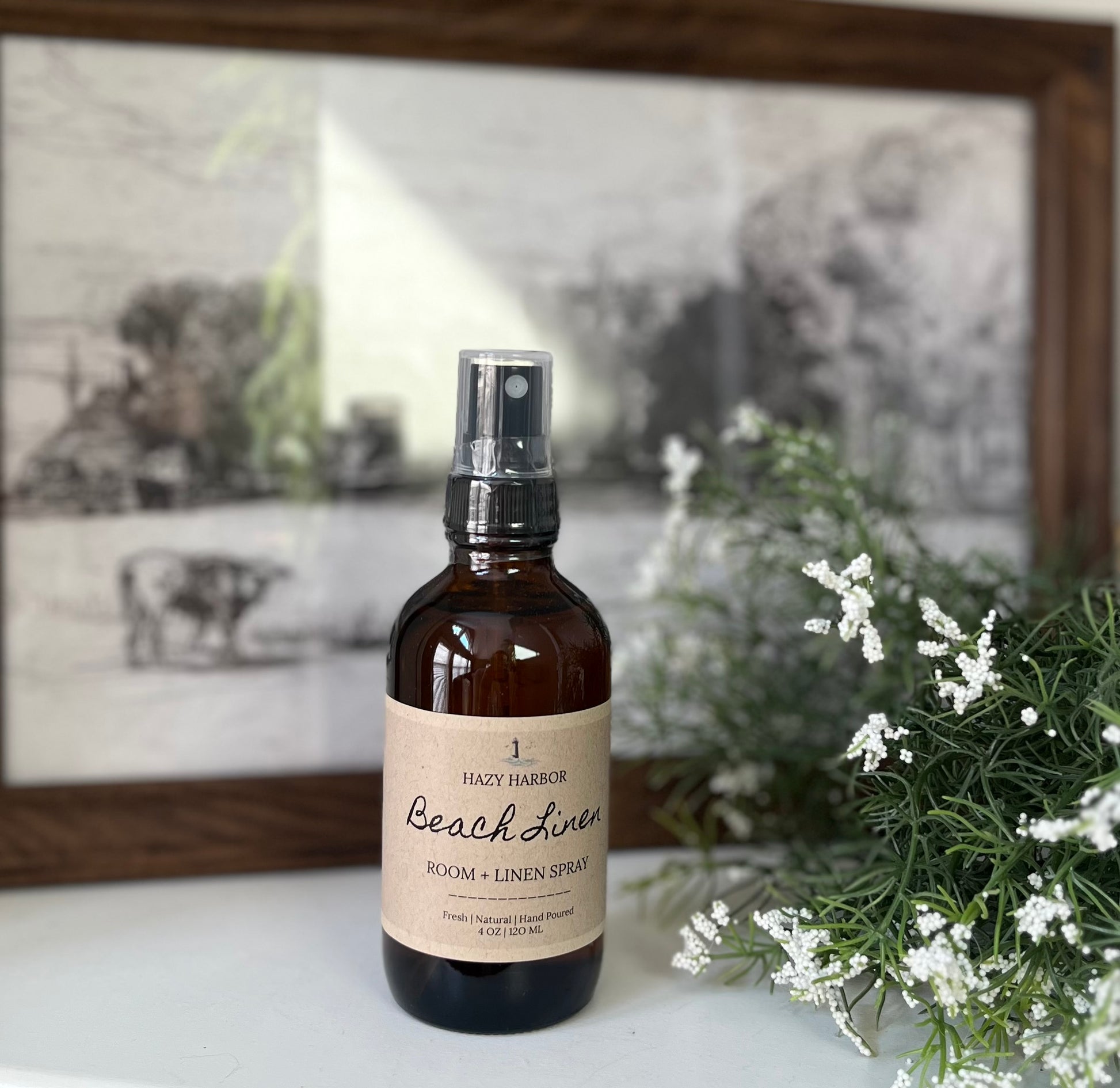 We are so proud to introduce our non toxic, naturally fragranced room and linen spray. Ultra fine mist disperses fragrance into the air, refreshing your space with clean and non toxic scents you can feel good about. Our sprays are fabric and upholstery safe. We do recommend testing in an inconspicuous space before spraying. Shake well before use as product can separate. Our sprays come bottled in amber glass bottles. Bottled by hand in small batches. (4 oz)